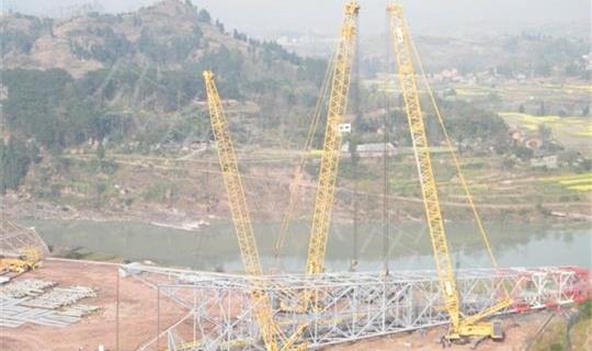 中石油羅家寨脫硫廠塔架機設備吊裝500T履帶吊起升高度120米起重230T